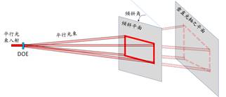 一般雷射光束通常是垂直入射 DOE,本公司設計不受此限制,雷射光束可設計成從任何傾斜角度入射 DOE,提供使用 DOE 之光機系統設計更大的彈性。